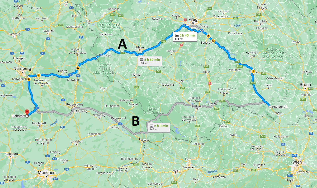 Route durch Tschechien